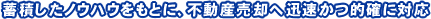 不動産に関する各種問題の早期問題の早期解決に向け、当社をパートナーとしてお選び下さい。 |